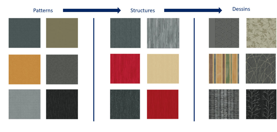 Consumer preferences were then translated into designs and colors. The designs in the collection are very diverse and range from plain canvas textures to expressive designs. In doing so, we create the recognizability of awning fabric, but also offer wonderful opportunities for truly ‘something different‘. In terms of color scheme, careful consideration was given to a mix of commonly used colors in the interior and exterior, but also to the colors commonly used as awning fabrics in the various countries.
